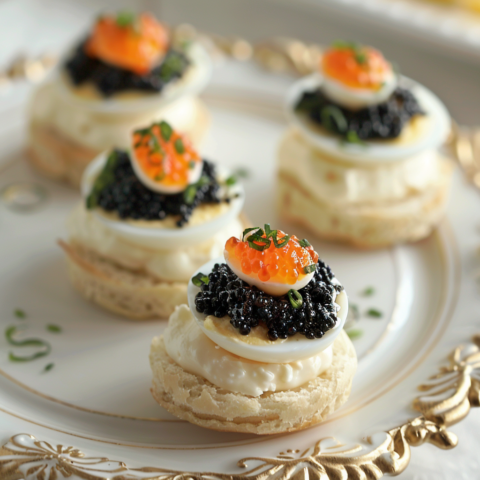 - Top each egg with a small spoonful of black caviar.